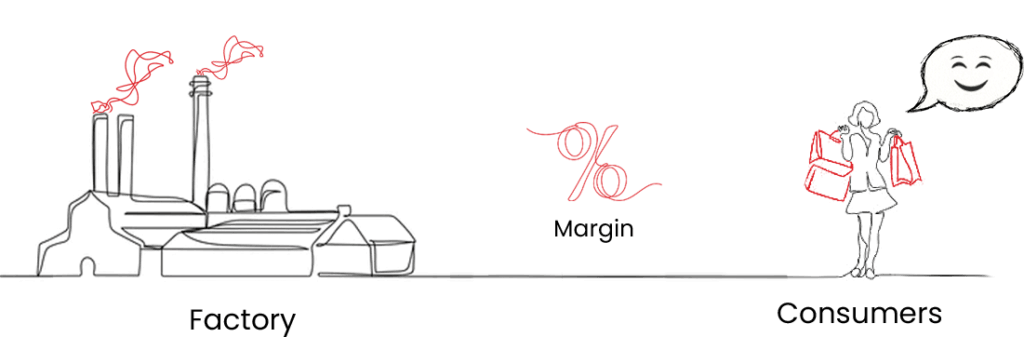 نقوم بذلك من خلال استخدام نظام بيع (مباشرةً إلى المستهلك) القائم على الاستغناء عن أي أطراف ثالثة. إذ أننا نقوم بعبارة أخرى بتوفير منتجاتنا مباشرةً إليك دون الإستعانة بأي من خدمات تجار الجملة وتجار التجزئة أو أي وسطاء آخرين.